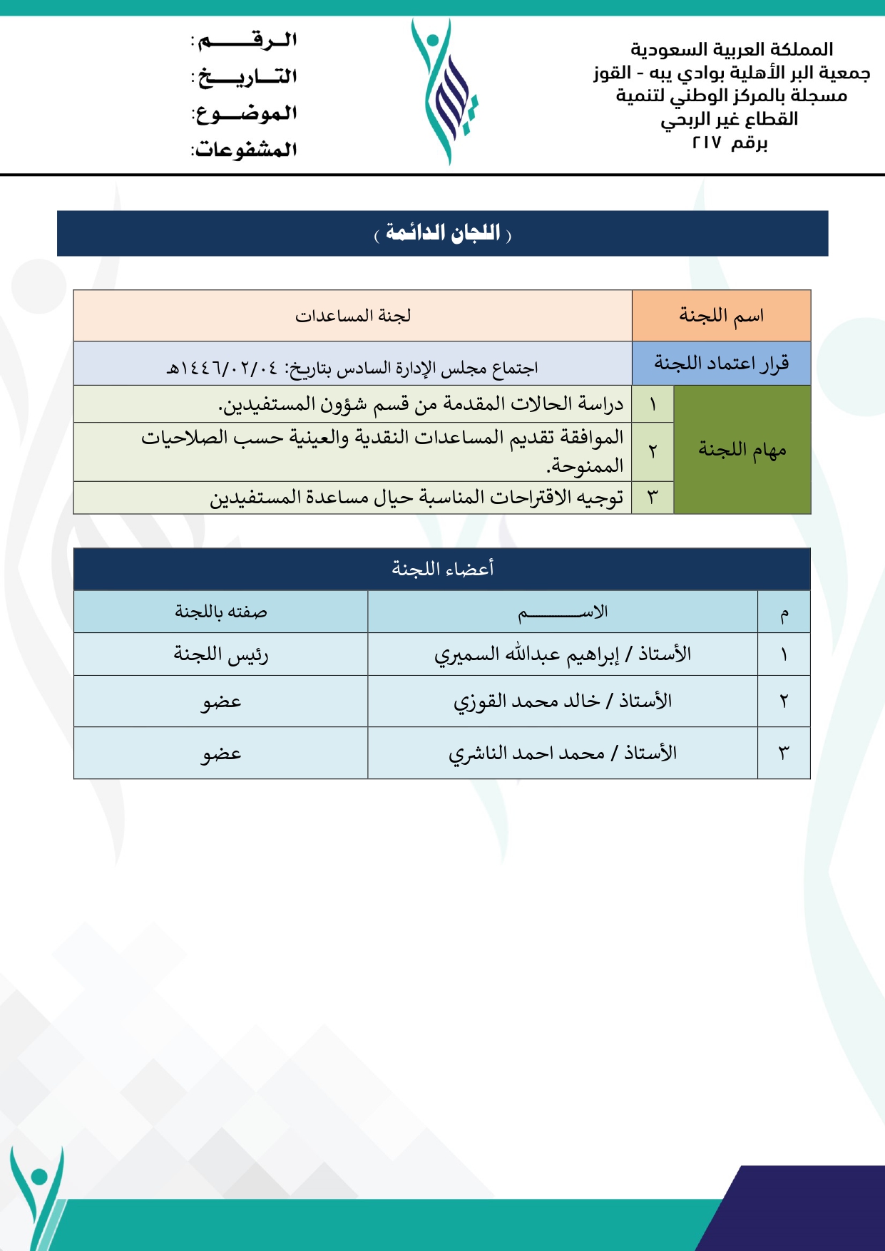 البرامج الداخلية المقدمة للعاملين في الجمعية